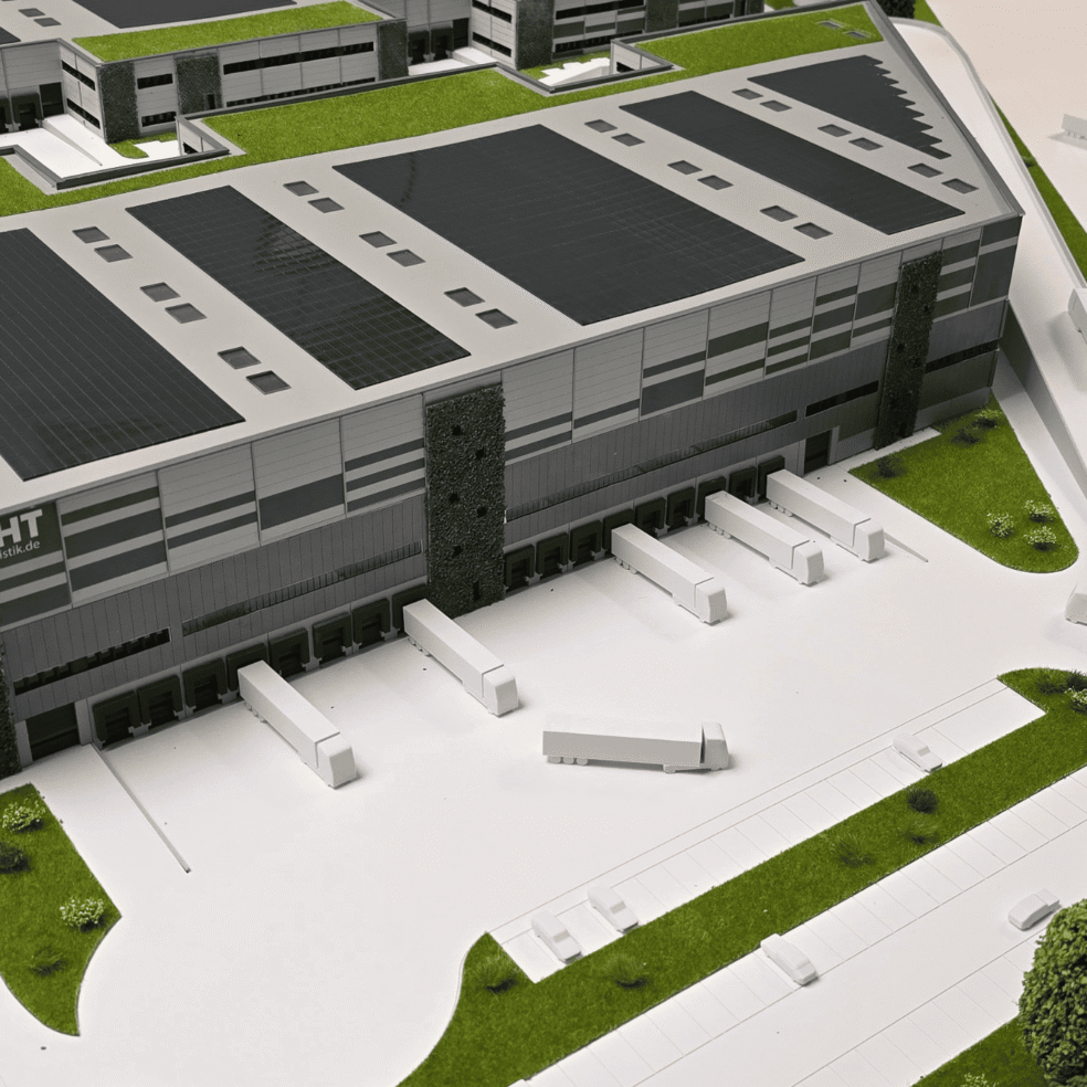 Architekturmodelle helfen dabei, komplexe Gebäude und Infrastruktur verständlich darzustellen – besonders bei großmaßstäblichen Projekten wie Logistik- oder Industrieanlagen. Wir entwickeln Modelle für Logistikzentren, Industrieanlagen, Forschungsanlagen und große Gewerbeprojekte – von Präsentationsmodellen bis zu großformatigen Ausstellungsmodellen.