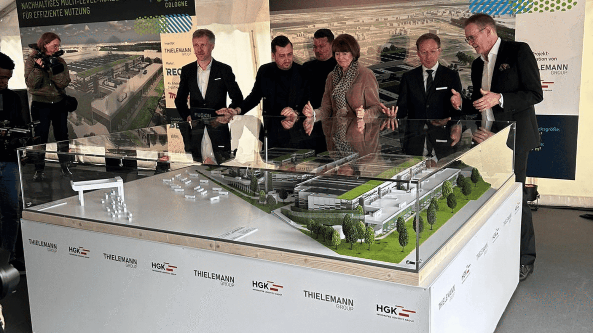 Für das Logistikprojekt Fusion One entstand ein großformatiges Architekturmodell der gesamten Anlage. Das Modell bildet die Struktur des Logistikzentrums mit Hallenbau, Verkehrsflächen und Gebäudearchitektur präzise ab.