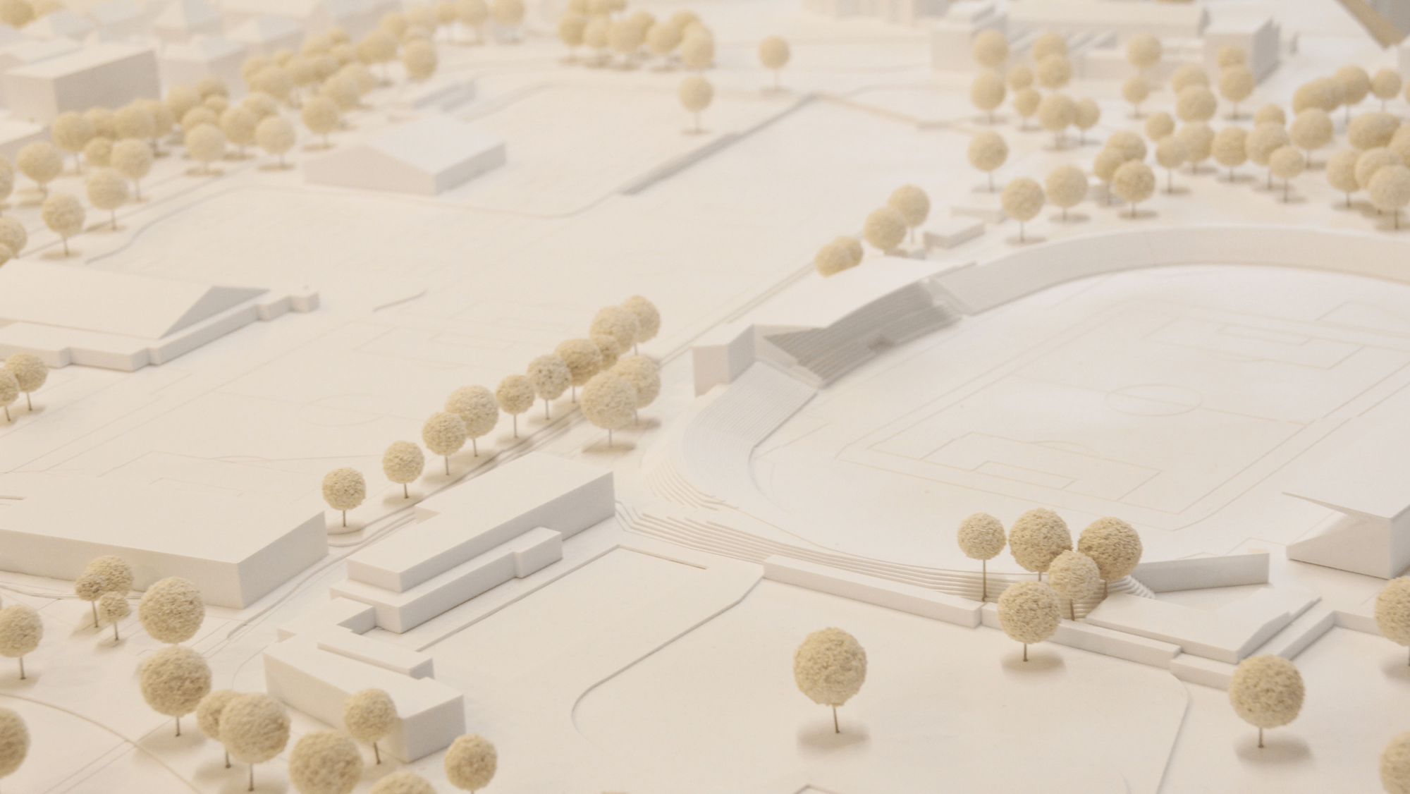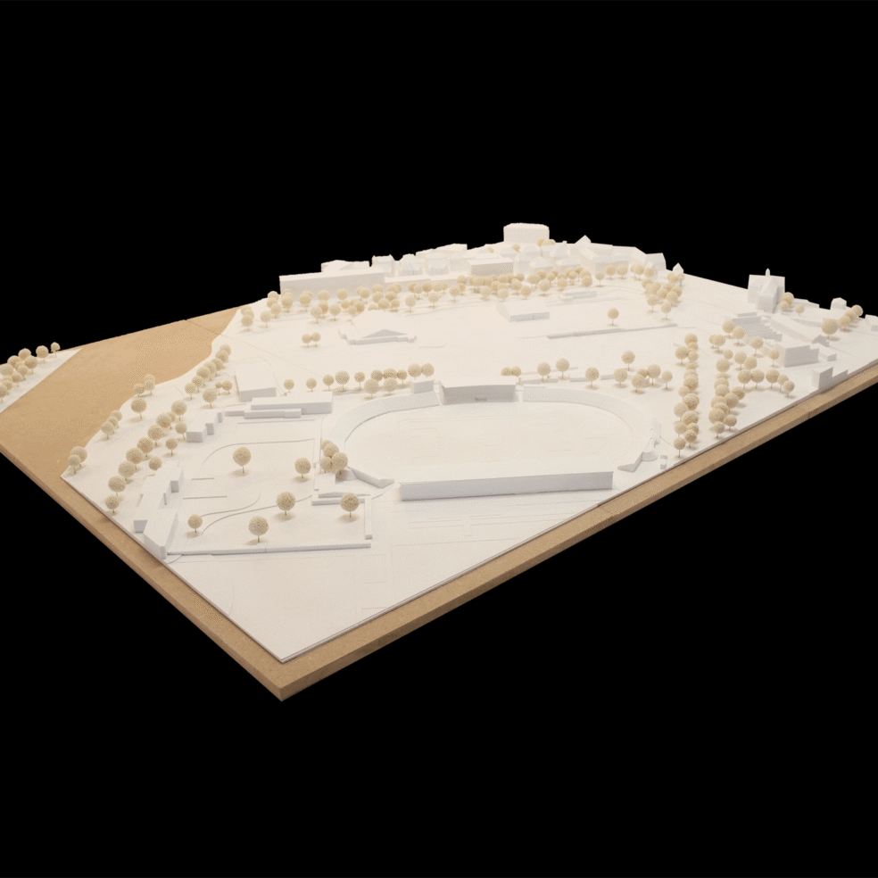 Für die Neuordnung und Bebauung rund um das SSV-Ulm-Stadion im Jahnsportpark haben wir ein Umgebungsmodell im Maßstab 1:500 gefertigt. Das Modell diente als neutrale Wettbewerbsbasis: sieben Planungsteams konnten ihre Entwürfe in ein identisches Umfeld einsetzen – für eine faire Beurteilung von Volumen, Kanten, Wegebeziehungen und städtebaulicher Wirkung.